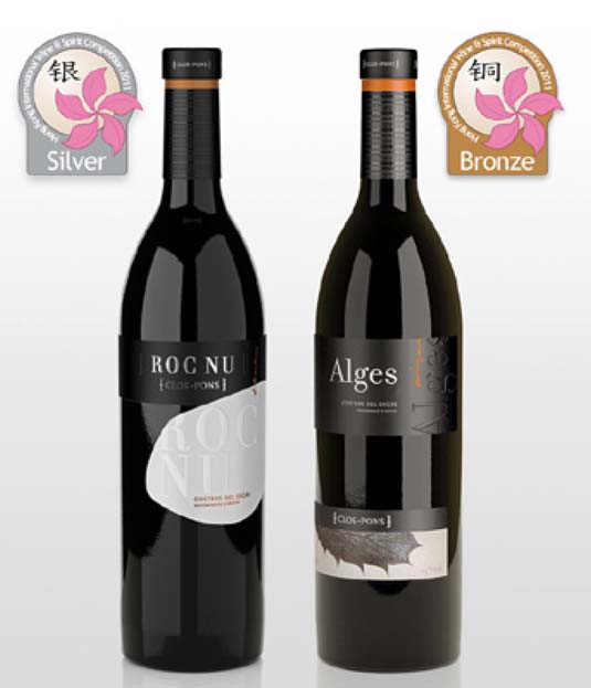 Els vins Clos Pons Roc Nu 2009 i Clos Pons Alges 2009 han estat premiats amb una medalla de plata i de bronze respectivament al Concurs Internacional de Vins de Hong Kong. El certamen asiàtic, celebrat el 3 de novembre, és un esdeveniment únic que s’executa en col·laboració amb la seu International Wine & Spirit Competition de Londres, la plataforma més important del món per al reconeixement de la qualitat de la industria vitivinícola, amb 40 anys de trajectòria. Es tracta d’una competició ideada per a proveir a la població asiàtica una sòlida guia de vins adaptada als patrons de consum actuals.