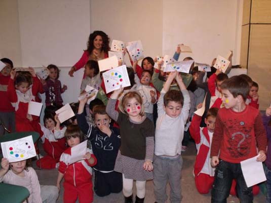 Els menuts han visionat un powerpoint per introduir-los en el món de l'art i els artistes catalans més universals: Miró, Dalí i Tàpies. Finalment, han enganxat gomets de colors a una fotocòpia de paleta de pintor, que cada petit artista es va endur a casa seua.