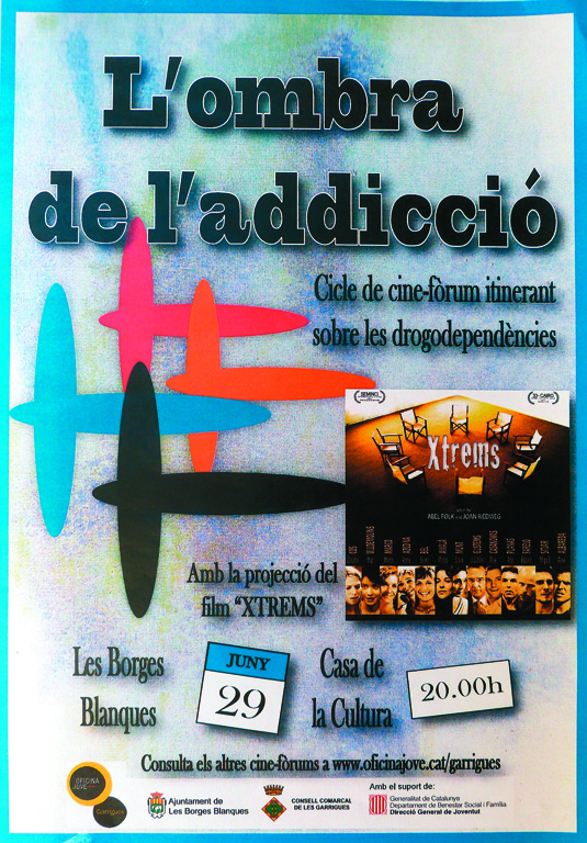 Les Borges enceta, aquest divendres dia 29, el cicle de cinefòrum itinerant sobre les drogodependències, que amb el títol ‘L’ombra de l’addició’ recorrerà diferents poblacions de la comarca. L’entrada és lliure i l’acte està adreçat a tota la població interessada: joves, educadors, mestres i professors, però sobretot, a mares i pares. El cicle està organitzat per l'Oficina Jove de les Garrigues.