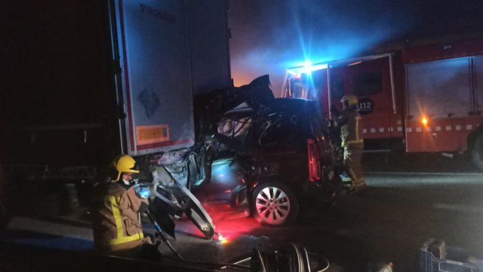 Tres persones han mort aquest divendres en un accident que ha tingut lloc cap a les cinc de la matinada a l’autopista AP-2, al terme de Castelldans en sentit Lleida, en una nit de boira densa a la zona. Totes tres eren membres d’una mateixa família i viatjaven a la mateixa furgoneta; dues han mort in situ (el conductor i una passatgera de darrere menor de d’edat) i la tercera (passatgera de davant) ha mort a l’hospital. La quarta persona que anava al vehicle, també menor i germà de l’altra víctima, està en estat crític a l’hospital. Els dos adults tenien 37 i 38 anys i eren veïns de Barcelona.