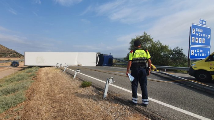 Un camió ha travessat la mitjana i es desvia el trànsit cap a la carretera N-240 per la sortida de les Borges Blanques.