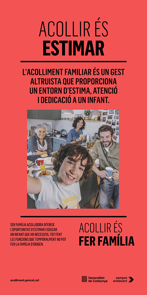 Imatge de la campanya 'Acollir és fer família' que engega la Generalitat per ampliar el nombre de famílies d'acollida. (imatge: Departament de Drets Socials)