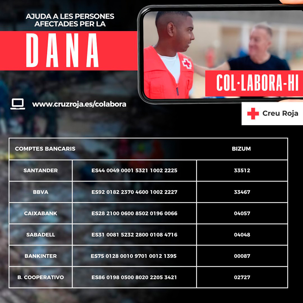 Les dues entitats municipalistes recomanen canalitzar les aportacions econòmiques (no de material ni aliments) a través de la Creu Roja. Aquest dilluns, l’ACM ha actualitzat la informació i insisteix en el mateix sentit. Tant Creu Roja de Catalunya com del País Valencià i a nivell estatal recorden que les aportacions econòmiques disminueixen la logística de la distribució, permeten una resposta més ràpida i ajuden a activar els negocis locals.