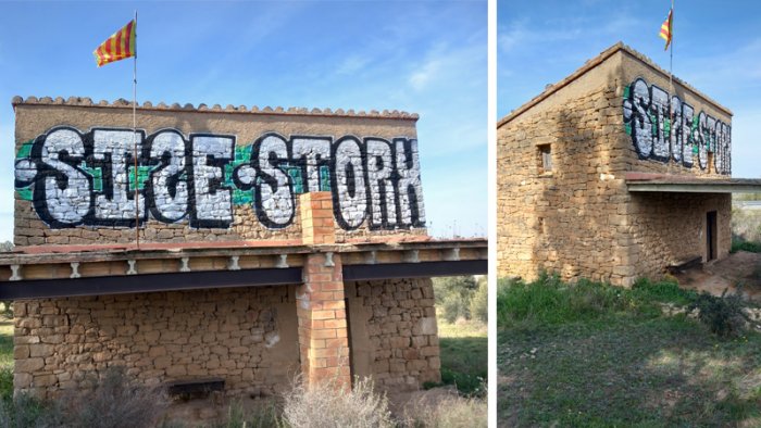 El propietari d’una finca agrícola de l’Albi ha comunicat a l’ajuntament de la població i ha denunciat als Mossos d’Esquadra l’enorme graffiti que algun desconegut va pintar entre el diumenge i el dilluns passats a la façana d’una cabana que té al terme, prop de l’autopista AP-2. L’edifici, de dues plantes, està construït amb la tècnica de la pedra seca i, segons el propietari, dataria d’uns 150 anys enrere. La pintada ocupa tota la segona planta de la façana.