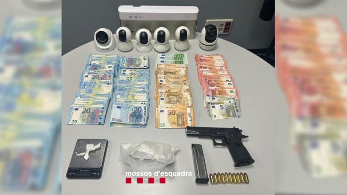 Els investigadors també van trobar una bascula de precisió, un equip per embolcallar i envasar al buit i una pistola semiautomàtica del calibre 45, carregada amb deu projectils. Es dona la circumstància que, a banda de detectors volumètrics i altres càmeres de seguretat interiors, hi havia una altra caixa forta més accessible, que els Mossos creuen que podia ser un “esquer” en cas de ser víctimes d'un narcoassalt per part d'altres grups.
