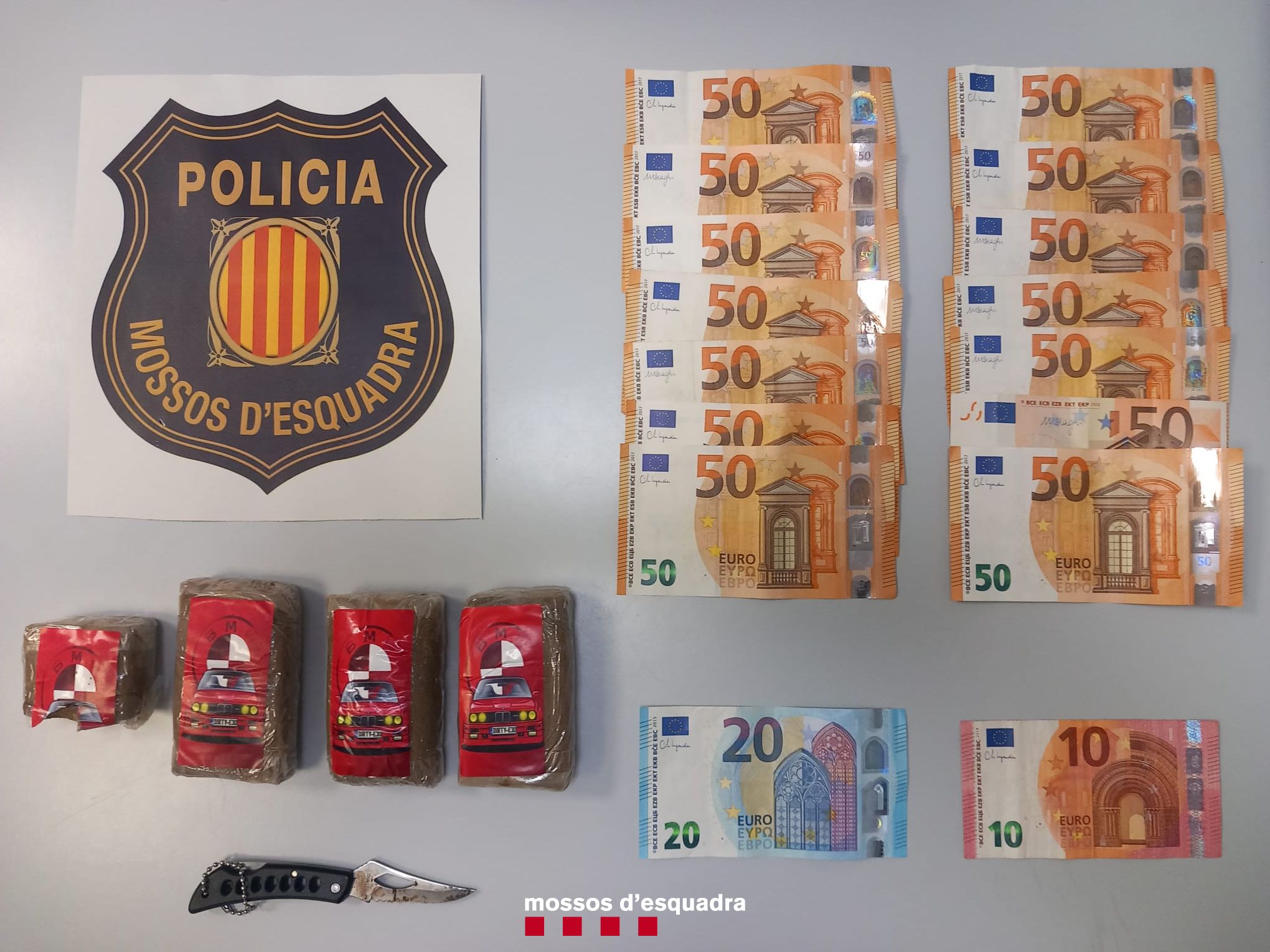 La policia va comissar tres peces i mitja d’haixix, amb un pes total d’uns 350 grams, i 730 euros en bitllets petits. Això va motivar la detenció del conductor i dels passatgers. Els tres detinguts, un dels quals té antecedents, passaran properament a disposició judicial davant del jutjat d'instrucció en funcions de guàrdia de Lleida.