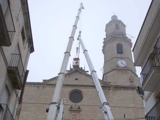 El procés de restauració de l’escultura de Sant Miquel Arcàngel ha estat d’una gran complexitat tècnica, a causa de les grans dimensions de l’escultura (3 metres d’alçada i 3 tonelades de pes), per la degradació produïda per agents biològics i del difícil procés de desmuntatge de la mateixa de la part superior de la teulada de l’església.