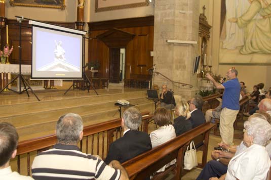 La segona part va comptar amb els parlaments de l’estudiós Ramon Queralt i de la historiadora de l’art, Montse Esteller, que van fer referència als orígens de l’església de les Borges, la seua construcció i la seua història, així com diversos aspectes artístics i iconogràfics de les escultures dels arcàngels St. Miquel, St. Gabriel i St. Rafael. Aquest darrer, es troba encara ubicat al lateral del timpà de l’església, perquè es troba adossat a la paret del temple i no amenaça de fragmentar-se. Els protagonistes a la tercera part va ser el tècnic del Centre de Restauració de Béns Mobles de la Generalitat (CRBMC), Pere Rovira, i les restauradores Patrícia Amat i Judit Birosta, qui van exposar les dificultats amb què es trobaren per dur a terme el trasllat i la intervenció en la imatge restaurada, així com les tècniques i tot el procés seguit per deixar l’estàtua en bon estat.