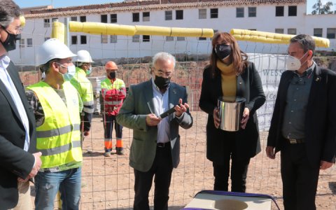 La presidenta del Parlament, Laura Borràs, posa la primera pedra del futur Arxiu Comarcal