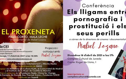 El diumenge 11 d'abril es projectarà a la Sala CEI de les Borges el documental "El proxeneta" i el 16 d'abril el Complex Cultural de Juneda acollirà la conferència "Els lligams entre pornografia i prostitució i els seus perills".