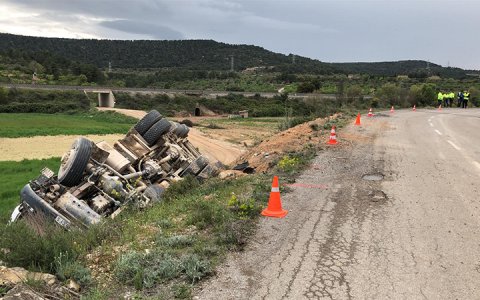 Mor el conductor d'un camió que ha bolcat en una pista a Vinaixa