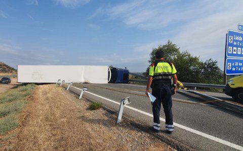 Un camió ha travessat la mitjana i es desvia el trànsit cap a la carretera N-240 per la sortida de les Borges Blanques.