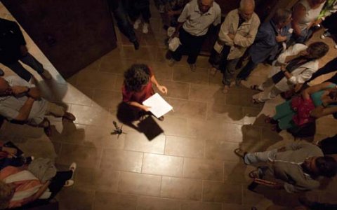 Una vuitantena de persones vingudes de la comarca i de poblacions de fora van assistir a la primera sessió del cicle d’intervencions artístiques Delicadeses –Art de Tros celebrada aquest 2 d’agost a Juncosa, a l’Hostal de la Serra, en un indret prop de la frontera amb el Priorat.
