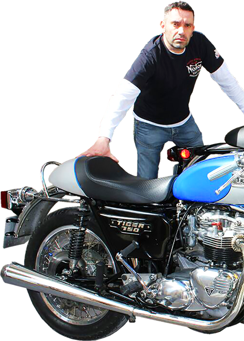 Joel González - M'agraden les antigues o més cap aquí però clàssiques. Les marques que més m'agraden són les angleses, com Triumph i Norton, i també l'americana Harley Davidson, però faig de tot. He fet coses per col·leccionistes de Lambretta i algunes Vespa.