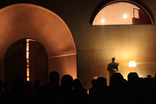 L’acte es va iniciar amb l’exposició temporal a la sala de bótes del celler del pintor Josep Guinovart: “El vino nos inicia en los misterios volcánicos del suelo” (Marguerite Youcenar). A continuació, els intèrprets Carme Ruiz, Gerard Moragues i Antonio Escayola, van fusionar diferents peces musicals (des de peces clàssiques fins a jazz) amb poesia, mentre els assistents degustaven una copa del vi Saó Rosat 2011 i unes torradetes amb oli Òlim i embotits.