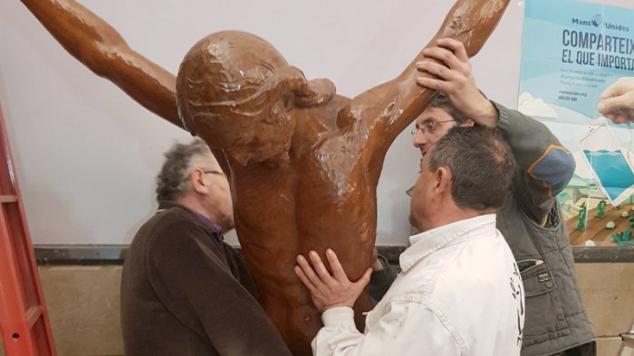 El tallista Daniel Gros i el pintor Jesús Masip han restaurat el Crist dels Descalços, una talla del 1958 que ha estat 22 anys sense ser exposada.