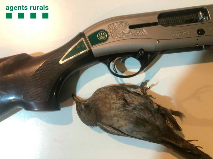 L'exemplar de merla caçat il·legalment i l'arma decomissada. FOTO: Agents Rurals