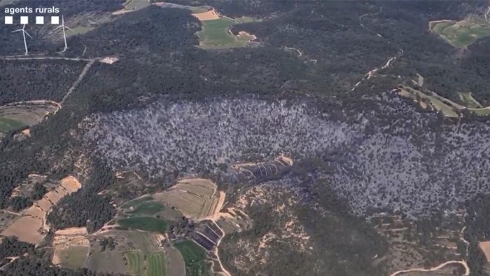 L’incendi que des d’ahir al migdia crema al peu de la serra de Vilobí entre l’Espluga de Francolí i Senan (Conca de Barberà), ha afectat també una part del terme veí de Fulleda, concretament 5,89 hectàrees de terreny forestal molt pròximes als aerogeneradors de l’extrem oest del parc eòlic Vilobí I. L’incendi, que els Bombers esperen controlar avui dilluns, està estabilitzat, és a dir, que el foc encara es propaga però no supera la capacitat d’extinció i ha cremat un total de 42 hectàrees, la gran majoria de bosc. Des d’ahir hi han estat treballant diverses dotacions de Bombers, tant amb mitjans terrestres com aeris, entre els quals els bombers voluntaris del parc de les Borges Blanques i el personal de l’ADF Sant Jordi, de Tarrés.