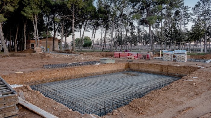 El recinte es construeix a la pineda del costat de l’antic camp de futbol i, si tot va sobre el previst, estarà acabat a finals de maig, a punt per a la temporada de bany d’aquest estiu.