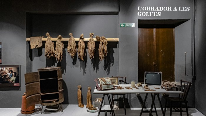 Caliquenyos. El tabac clandestí de Ponent, com s'anomena la mostra, ressegueix mitjançant plafons, una projecció, tauletes i objectes històrics l'elaboració dels populars purets i la profusió tant de les plantacions de tabac en territori garriguenc com de la seva elaboració casolana i clandestina.