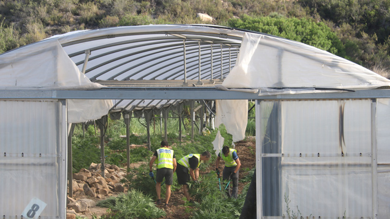 Els Mossos d'Esquadra van trobar ahir al terme d'Almatret una plantació de 1.820 plantes de marihuana en 14 hivernacles. És la primera característiques que es desmantella a la província, ja que fins ara s'havien trobat en naus, espais exteriors o dins de cases. Aquesta era a uns 10 km del poble, en una zona de difícil accés on hi havia uns antics vivers d'arbres amb connexió d'aigua.
