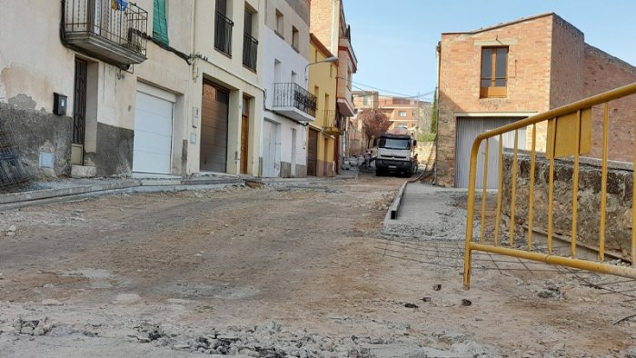 Des del consistori expliquen que esperen que la circulació es pugui restablir a partir de la primera setmana de maig coincidint amb la festa major. Els carrers tindran a partir d’ara un espai central encimentat i unes voreres amb llambordes, com ja es va fer al carrer Prat de la Riba.