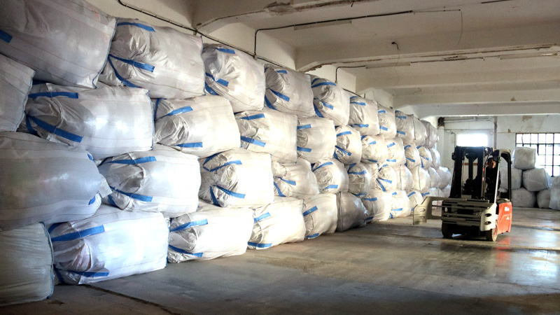 Magatzem on arriba la roba que hi porta el camió. (foto: Alba Mor/ACN)