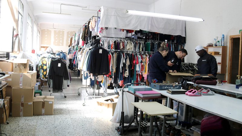 Treballadors de Troballes, a l’espai de classificació de les peces. (foto: Alba Mor/ACN)