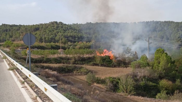 El foc ha cremat algunes feixes de pi i matoll entre bancals de sembrat i ametllers, a tocar de la carretera LV-2012, i s’ha donat per extingit a quarts d’una del migdia. La superfície cremada ha sigut d’uns 3.500 m2. “Per sort, ha sigut en un lloc de molt fàcil accés, només que hagués sigut una mica més cap dins, hauríem tingut un problema seriós”, explica l’alcalde, Jordi Arbós.