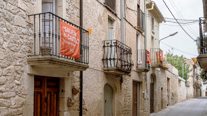 Molts balcons del poble llueixen banderoles de suport al projecte. (foto: X.M.)