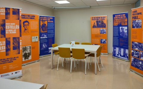 Amb motiu de la commemoració del centenari del seu naixement. La mostra, que és itinerant, serà a la biblioteca durant tot el mes. El dia 10, a més, hi ha un recital poètic musical sobre la vida i obra d’Estellés.