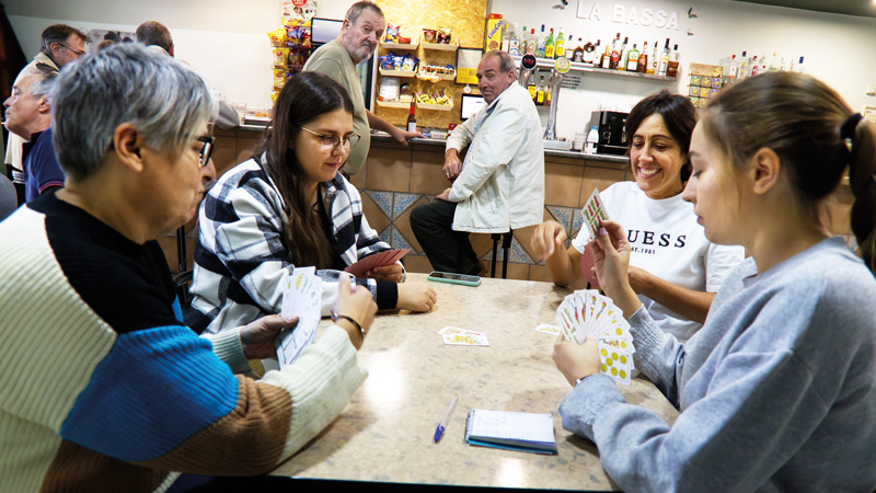 Qui no té cap obstacle a sortir a la palestra són dues mares amb les seves filles que cada matí, des de fa més de dos anys, juguen plegades al bar La Bassa de Torregrossa. "De vegades cridem tant d'emoció que alguns clients es giren per veure què ens passa", admet rient Anna Claramunt. Ella juga de parella amb la Teresa Solé i va aprendre els secrets de la botifarra a l'escola, quan era adolescent. Durant molt temps havia tingut el seu marit de parella de joc, però per circumstàncies de la vida, ara coincideix en horaris amb la seva filla Laura i la seva amiga Maria, que precisament és la filla de la Teresa. Les quatre, tot i ser una excepció en un món especialment masculinitzat, reivindiquen que en aquest joc sempre hi ha hagut dones jugant.