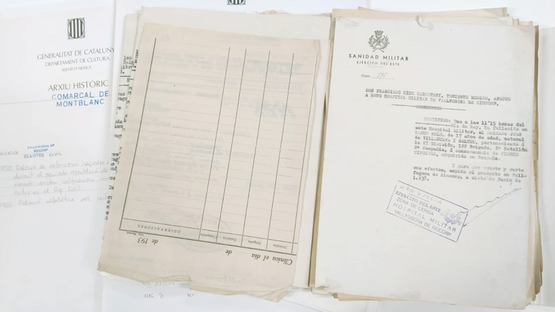 El mateix estiu van contactar amb el borgenc Gerard Bellmunt, autor del llibre El pas del padrí per la Guerra Civil espanyola i molt bregat amb la documentació històrica d'aquell període, especialment la militar. Bellmunt va tardar poquíssim a plantar-se a l'Arxiu Comarcal de Montblanc i localitzar-hi el certificat de defunció de Joan Banús: mort per febre tifoidal adquirida en campanya. No va morir en combat, metrallat o bombardejat, que era una de les creences -i temors- de la família. I al certificat hi havia una altra informació molt valuosa, que no sempre surt: la unitat militar. 27 Divisió, 122 Brigada, 2n Batalló, 2a Companyia.