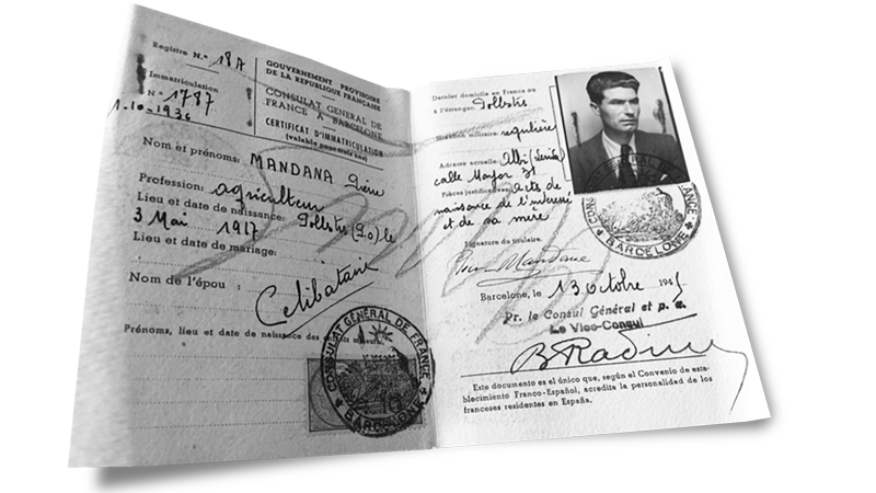 (passaport francès de Mandaña, on consta l’adreça de l’Albi)