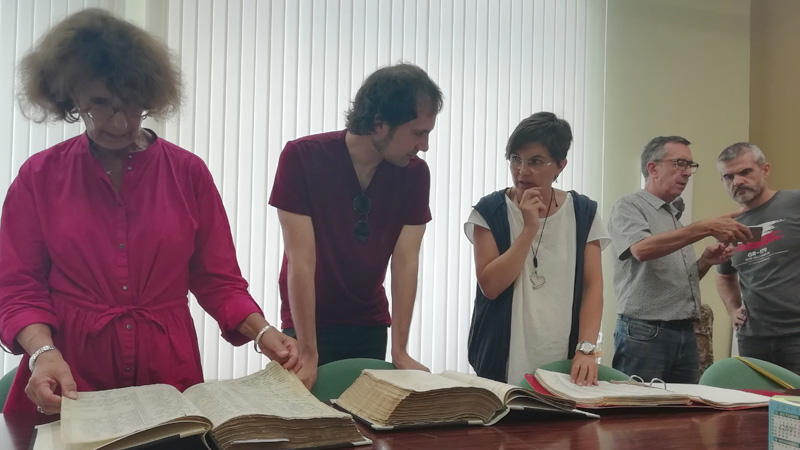 Familiars de Navés i membres de la Comissió per la Memòria, rebuts a l’Ajuntament. (foto: M.A.)